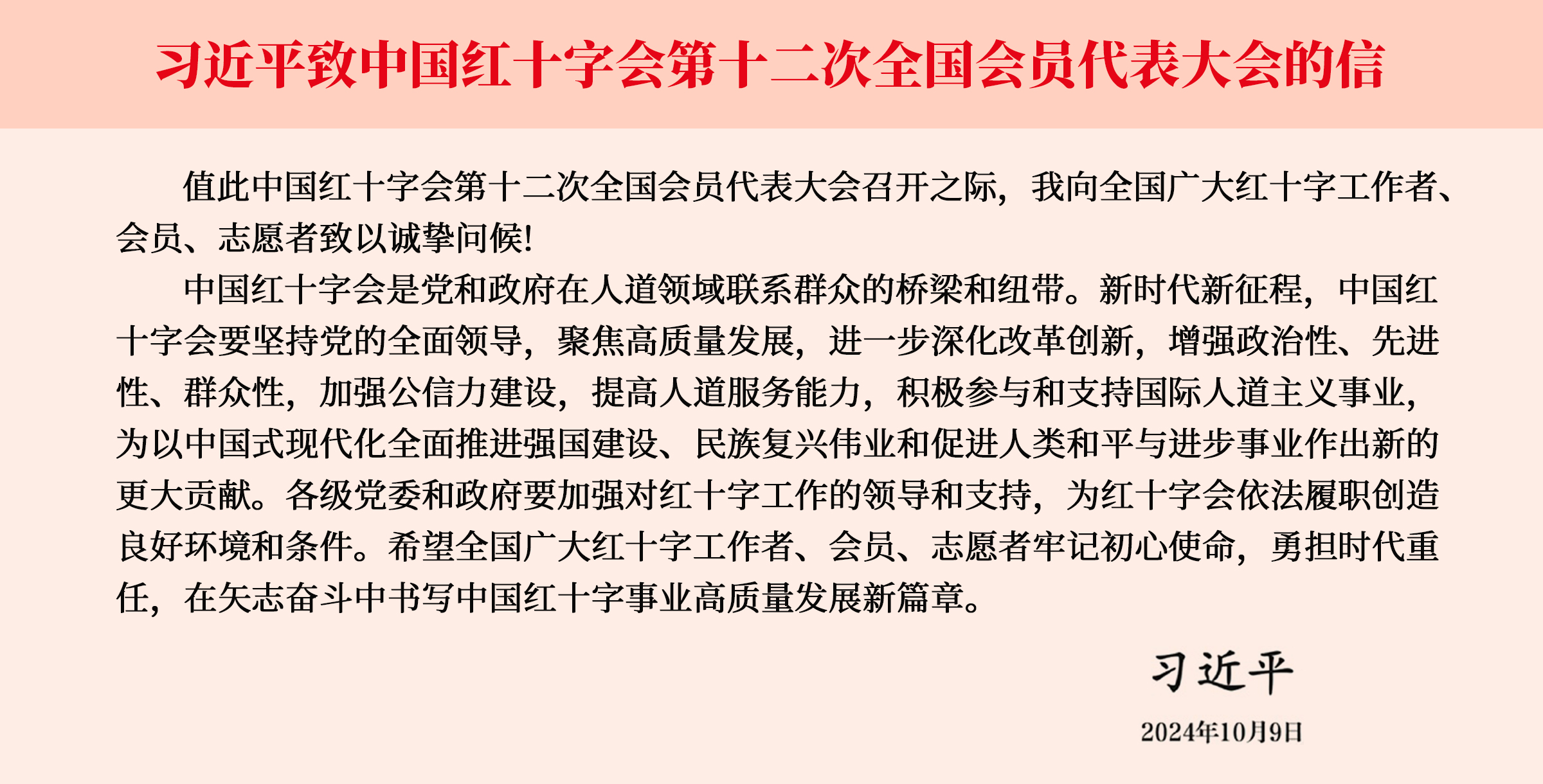 习近平致中国红十字会第十二次全国会员代表大会的信